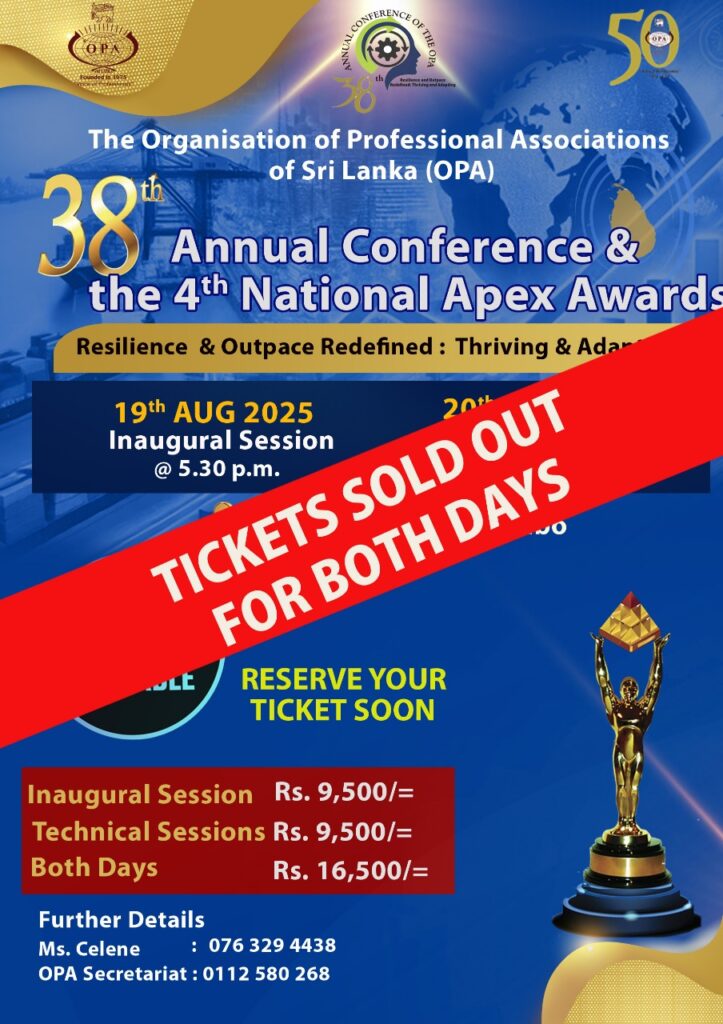 The 38th Annual Conference of the Organisation of Professional Associations of Sri Lanka (OPA) will take place on 19th & 20th August 2025 at Cinnamon Life, Colombo!